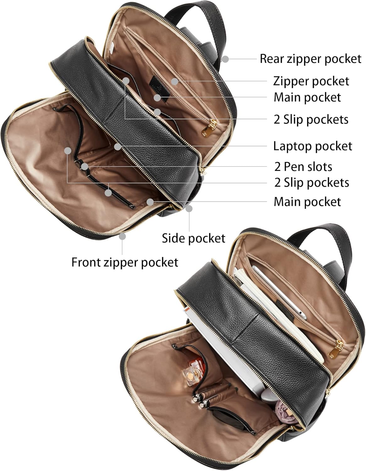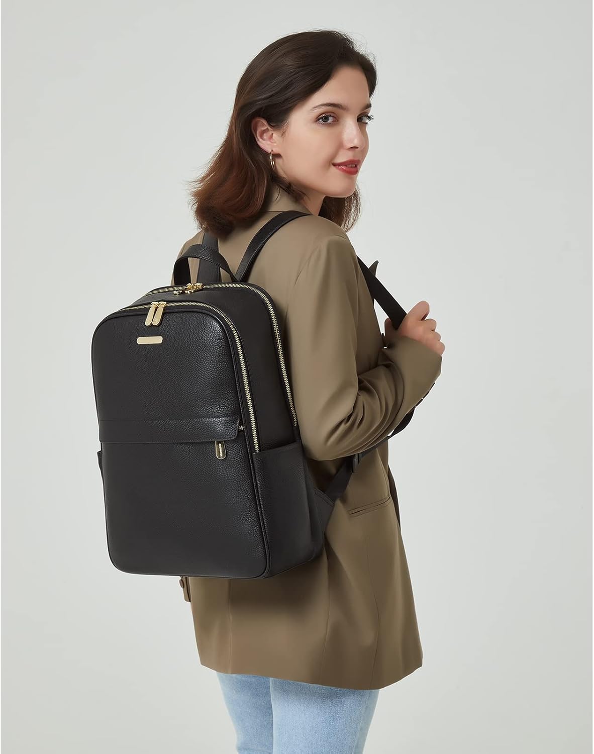 BOSTANTEN Genuine Leather 15.6 inch Laptop Backpack Purse for Women College Casual Backpack Travel Bag