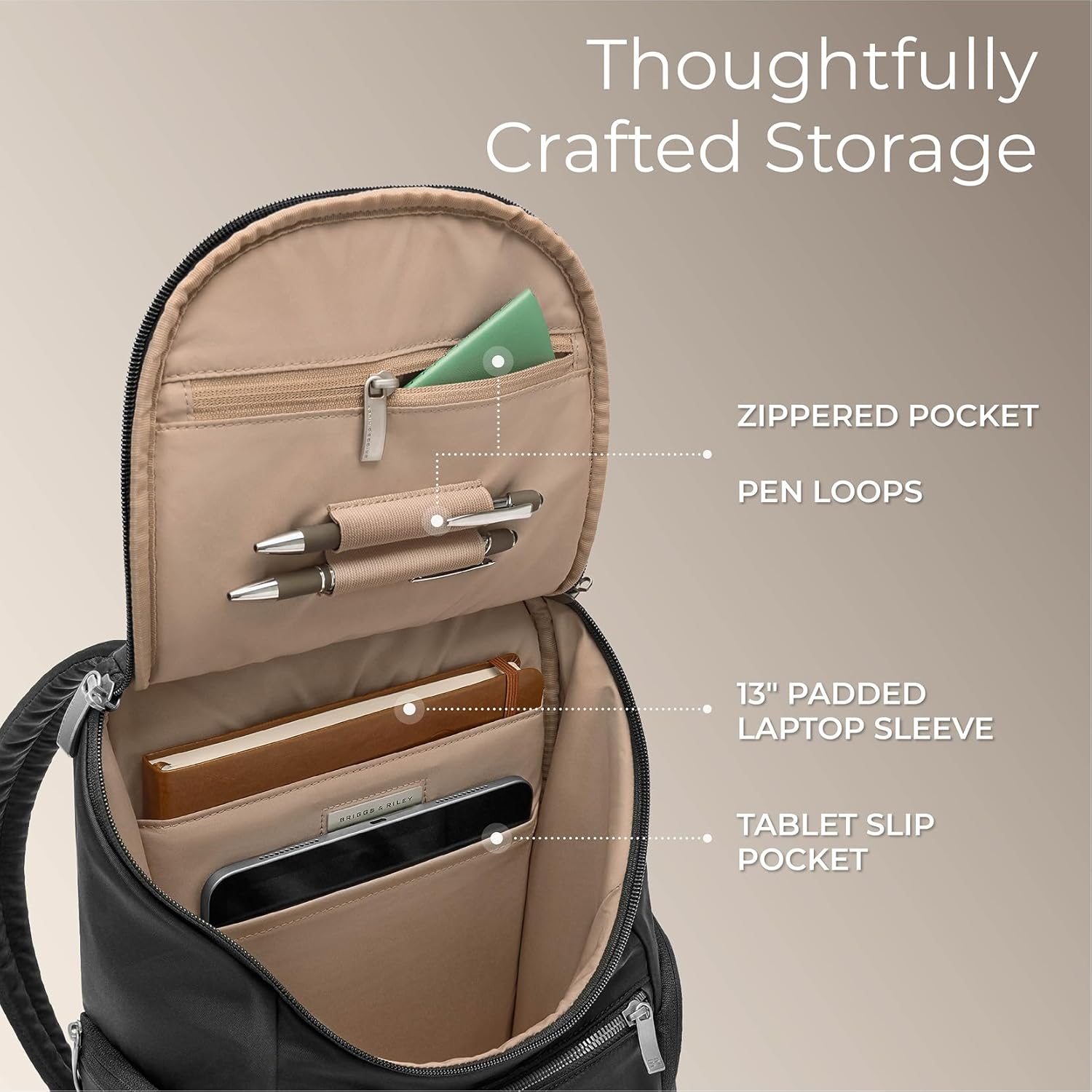 Briggs & Riley U-Zip Backpack – Daypack for Work, Personal Item Travel Bag, Carry On Size, Lightweight & Durable, Padded Straps, Fits up to 13″ Laptop – Rhapsody Collection, Black