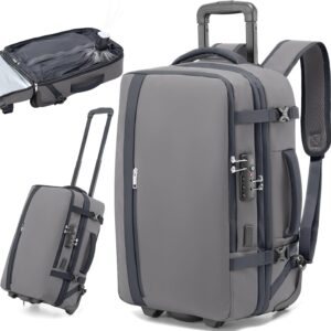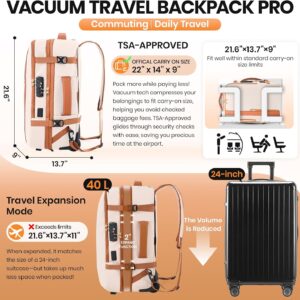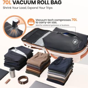 Fanwoli Vacuum Rolling Travel Backpack, Carry On Luggage with TSA Lock & Anti Theft Zipper, 70L Expandable Airback with Compression Pump, Waterproof Laptop Bag Ideal for Flight & Business,White