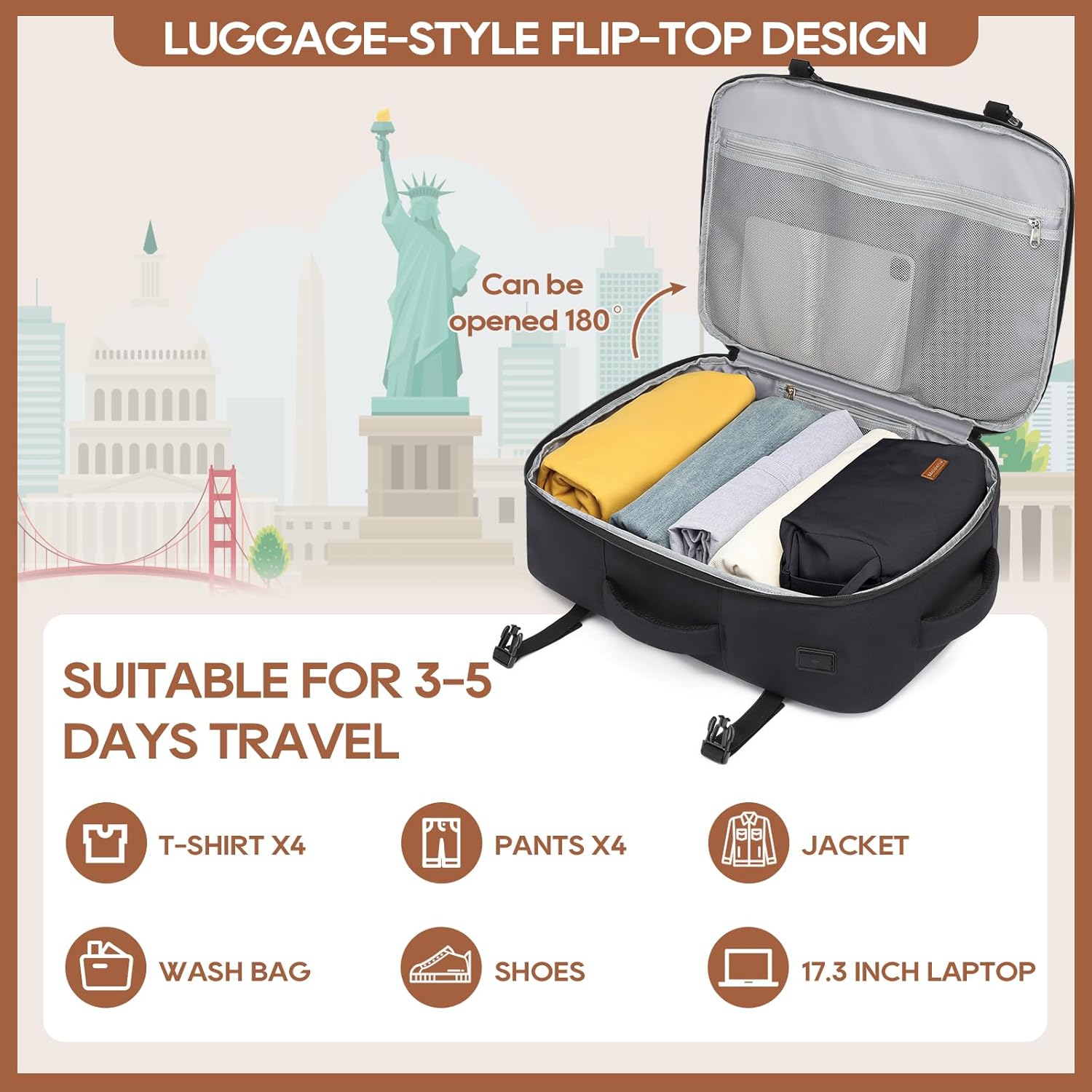 Joyway Carry on Travel Backpacks, 40L Extra Large Travel Backpack for Men & Women Airline Approved, Large Suitcase Backpack with 7 Storage Bag, Water Resistant Weekender Bag