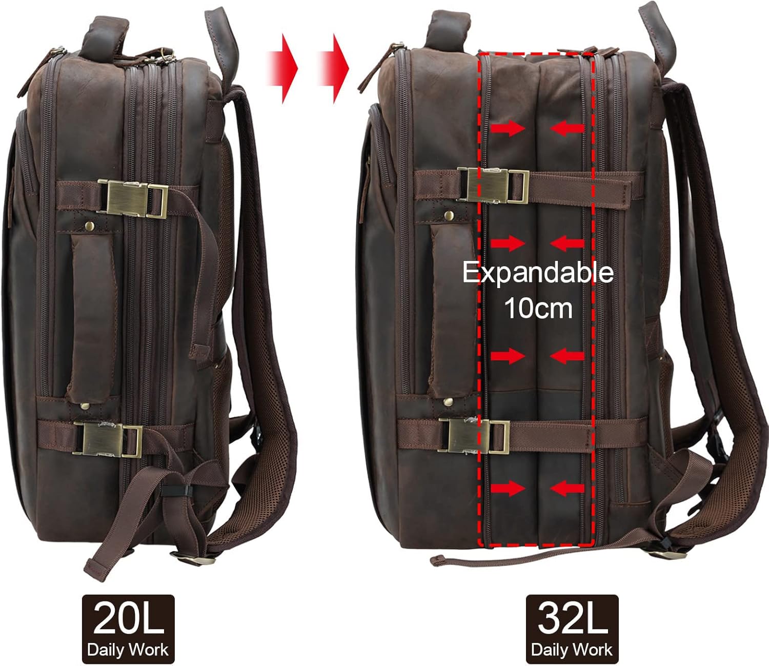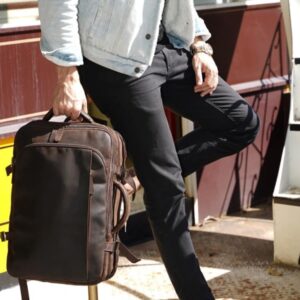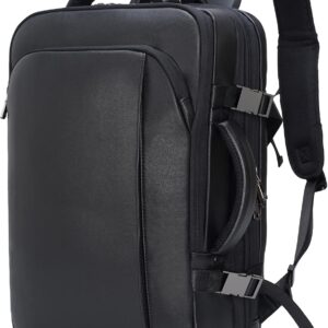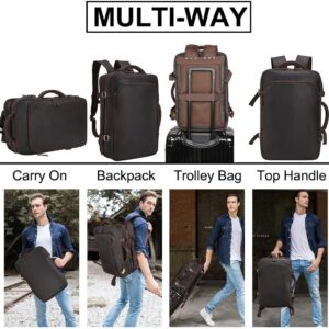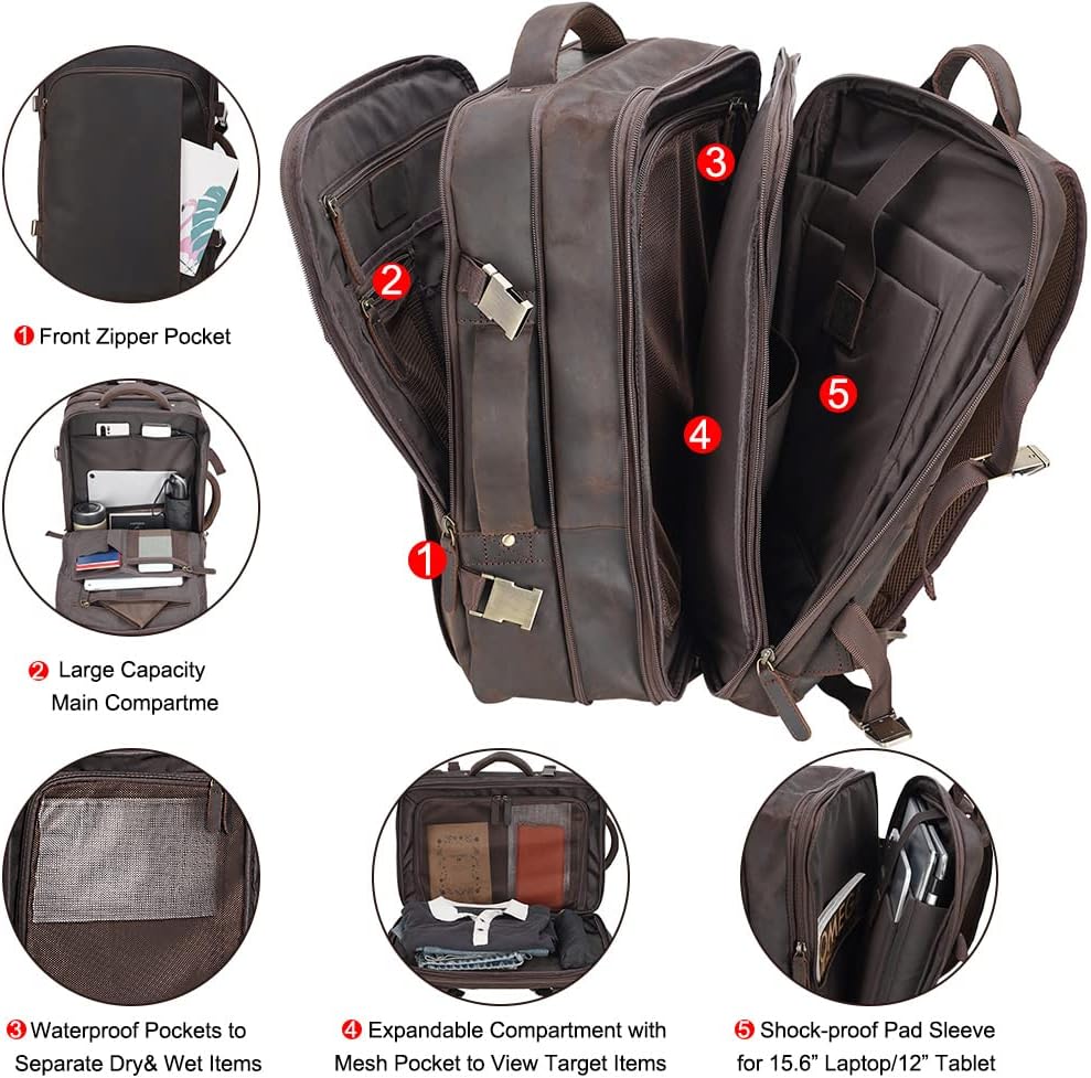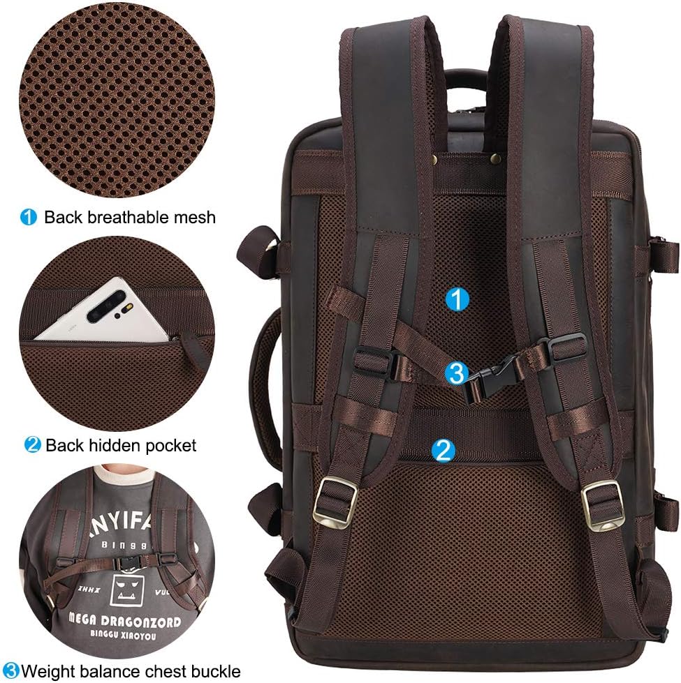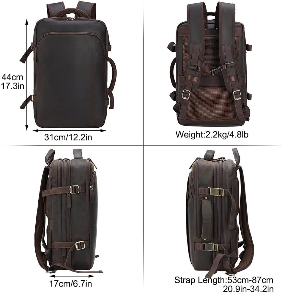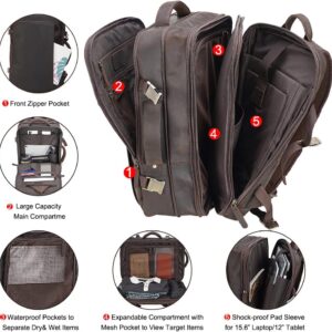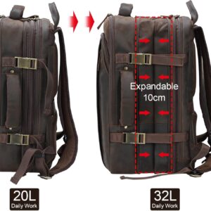 Masa Kawa Leather 15.6 Inch Laptop Backpack for Men Expandable 36L Business Travel Rucksack Daypack Weekender Bag