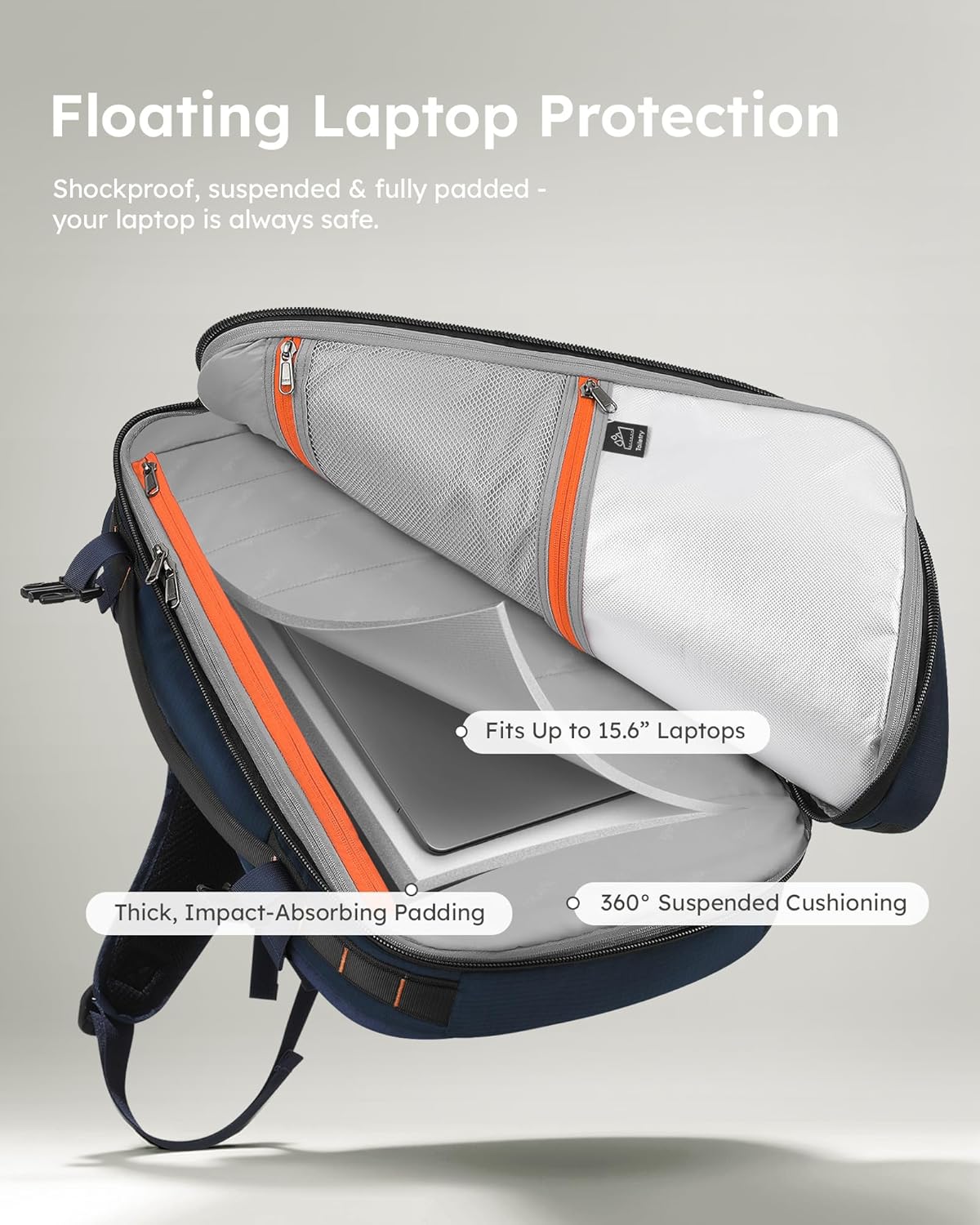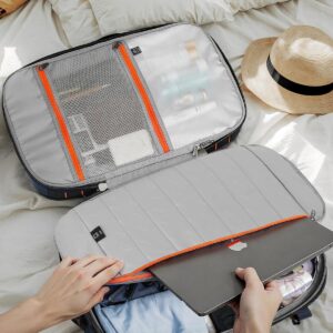 Tolaccea Travel Backpack, TSA Friendly Flight Approved Carry-on Luggage Water-resistant Business Rucksack, Durable Large Computer Bag Daypack Fits 15.6 Inch Laptop, 35-45L Expandable – Navy