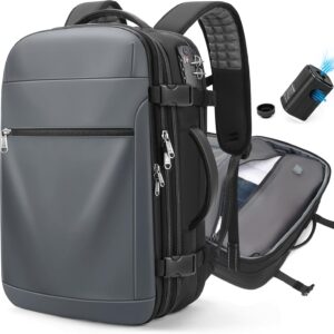 Vacuum Backpack Travel \u2013 Expandable Compression Carry On Backpack with Vacuum Pump, Water-Resistant TSA Lock Travel Bag, 17″ Laptop Backpack for Men Women, Business Airplane Flight Luggage
